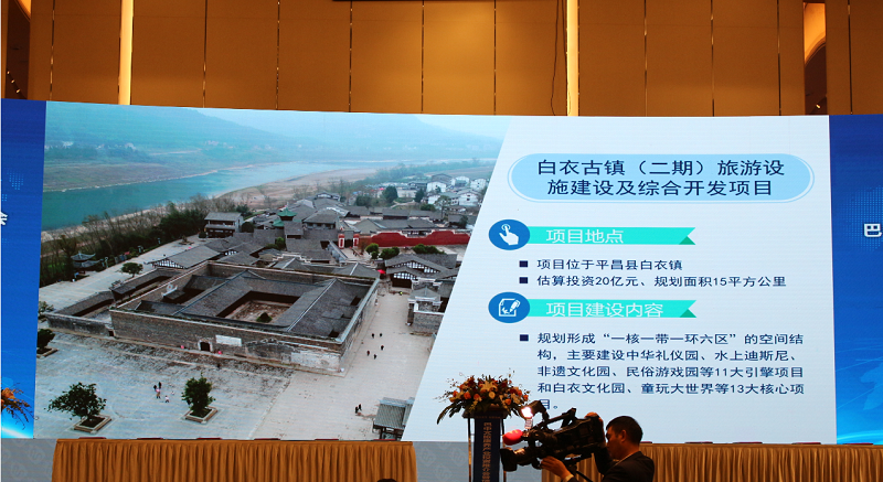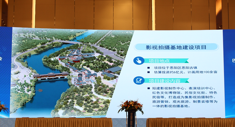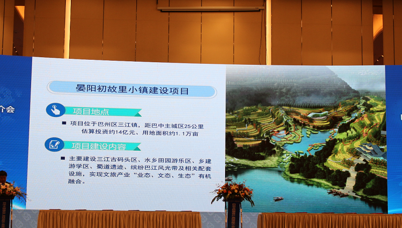 推介会现场,观看了巴中市投资环境宣传片后,巴中晏阳初故里小镇建设项目、恩阳古城影视拍摄基地建设项目等5个文旅康养产业重点招商项目与所有嘉宾见面。