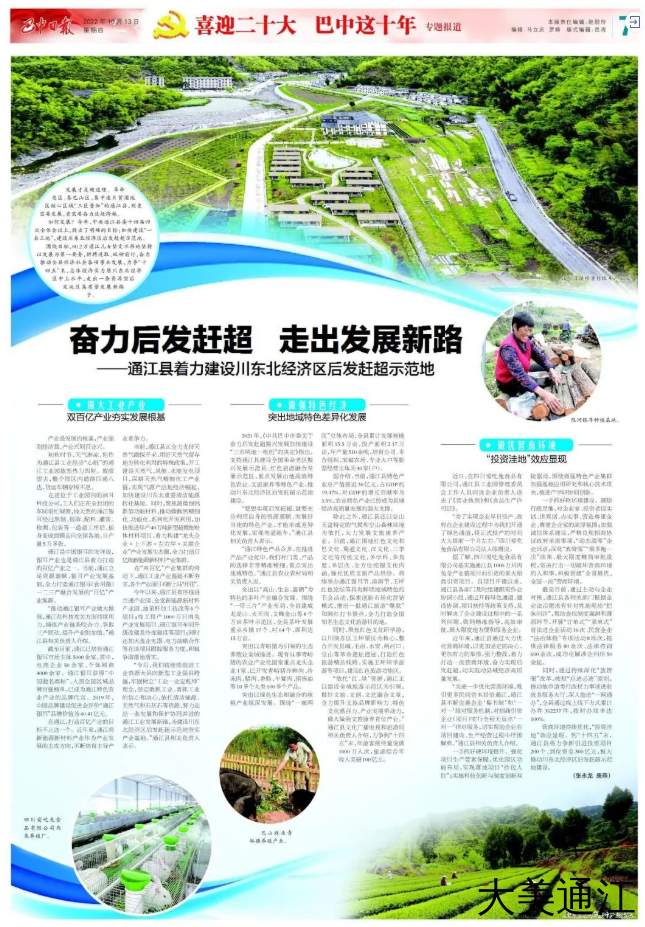 发展才是硬道理。革命老区、秦巴山区、集中连片贫困地区核心区域“三区叠加”的通江县,则更需要发展,更需要奋力追赶跨越。