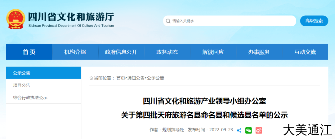 第四批天府旅游名县命名县2022年9月23日,四川省文化和旅游产业领导小组办公室发布了关于第四批天府旅游名县命名县和候选县名单的公示,通江县拟命名为“第四批天府旅游名县”。