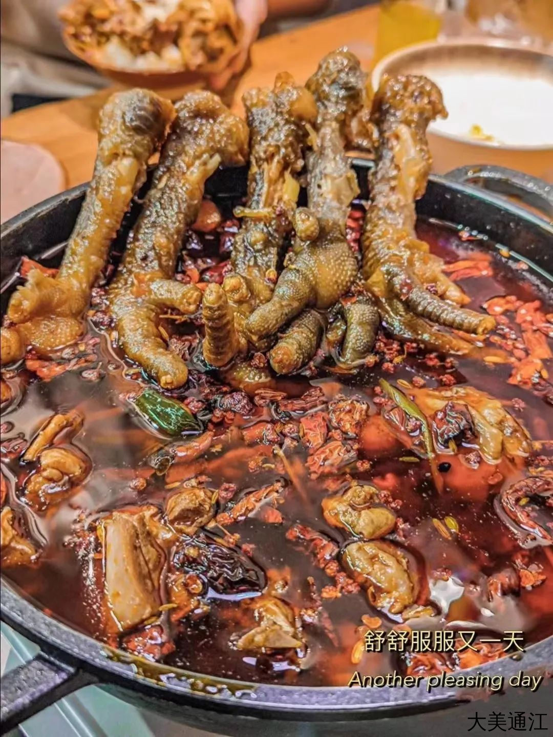 当热乎乎红艳艳的烧鸡公被端上来,现泼一碗热油,香辣让人汗颗子直流!土灰菜酥肉,刨汤锅上摆,帅哥美女吃了都不得甩!虎皮凤爪也脱骨,大的赛巴掌!