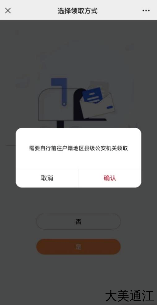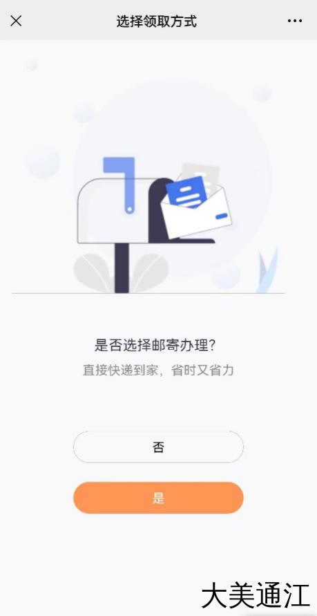 选择是否邮寄领取,选择“是”进入邮寄页面,填写收件地址并缴费,选择“否”则进入到办理单位领取页面。