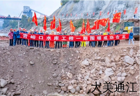 11月27日9时30分许,随着最后一车土石料倒入龙口,位于通江县诺江镇的青峪口水库工程一期土石围堰顺利实现合龙。